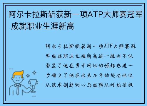阿尔卡拉斯斩获新一项ATP大师赛冠军,成...
