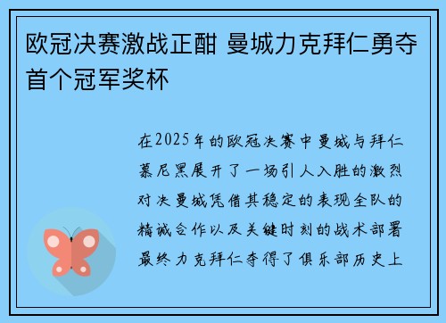 在2025年的欧冠决赛中,曼城与拜仁慕尼...