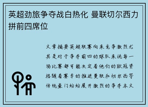 文章摘要:英超联赛向来竞争激烈,尤其是对...