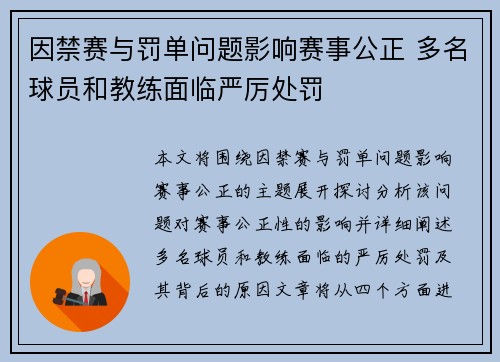 本文将围绕因禁赛与罚单问题影响赛事公正的...