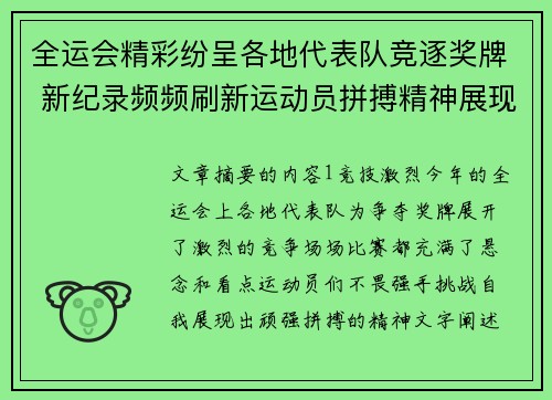 文章摘要的内容1、竞技激烈今年的全运会上...