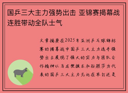 文章摘要:在2025年亚洲乒乓球锦标赛的...