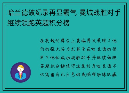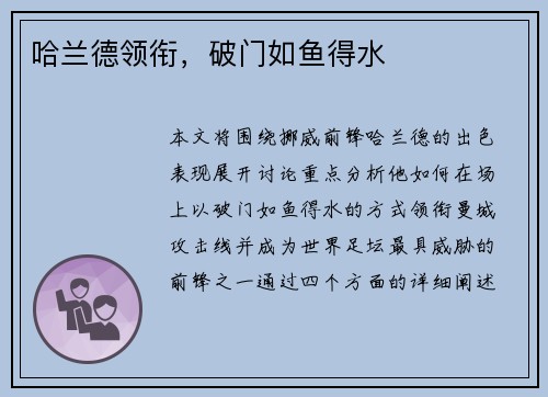 本文将围绕挪威前锋哈兰德的出色表现展开讨...