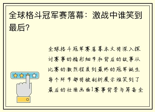 全球格斗冠军赛落幕,本文将深入探讨赛事的...