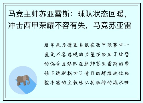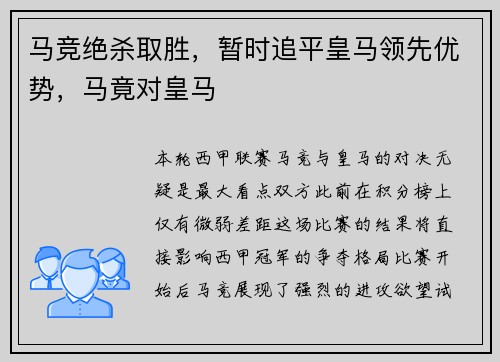 本轮西甲联赛,马竞与皇马的对决无疑是最大...