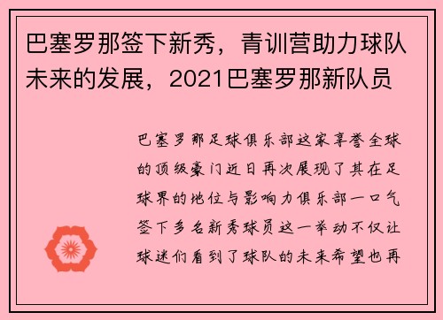 巴塞罗那俱乐部近日传来喜讯,正式与法国球...
