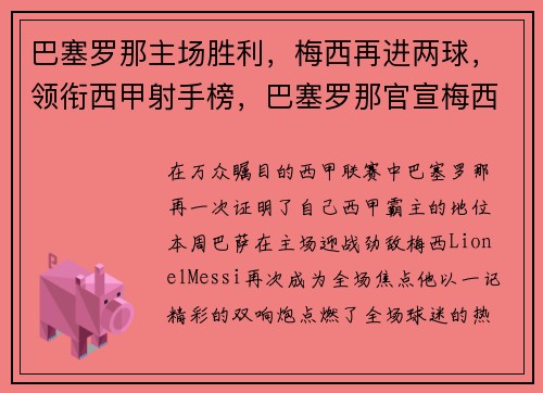 在万众瞩目的西甲联赛中,巴塞罗那再一次证...