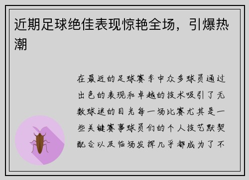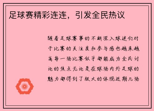 随着足球赛事的不断深入,球迷们对于比赛的...