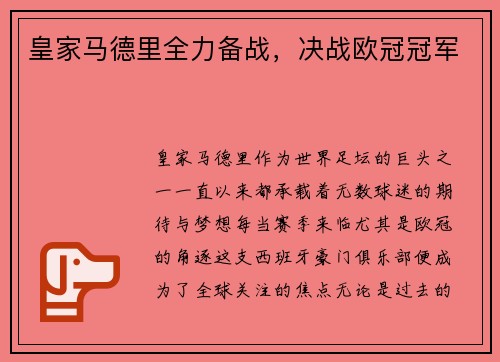 皇家马德里,作为世界足坛的巨头之一,一直...